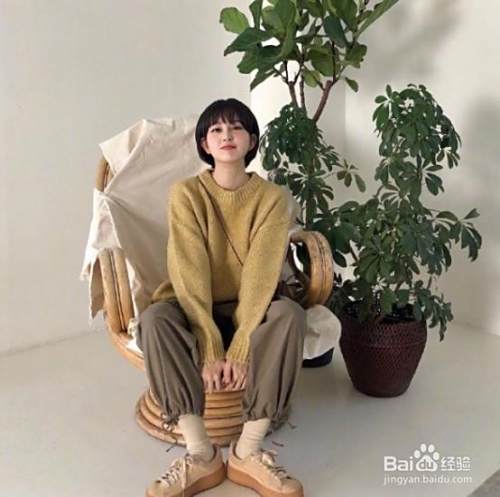 这个类型的短发太少女了吧,很适合脸小并且脸型好看的女生,让我想到了《一起来看流星雨》里面的姐姐慕容云朵,她也是同款发型。这一套是休闲慵懒风装扮,鹅黄色毛衣与灰色宽松休闲裤一起搭配,色调看起来很舒服并且很适合青春的女生穿搭。