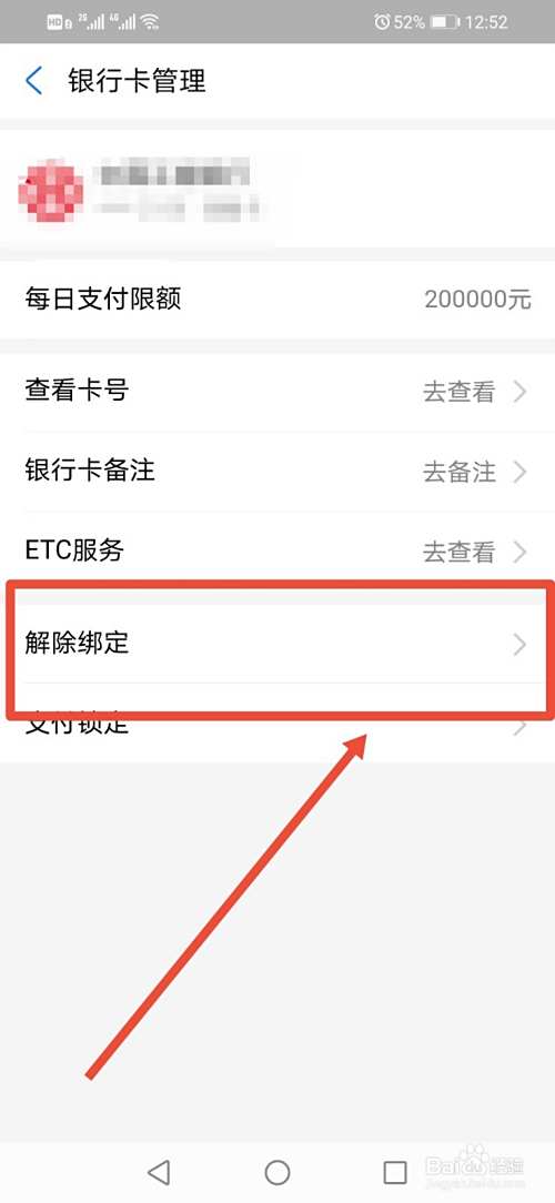 点击你想要解绑的银行卡