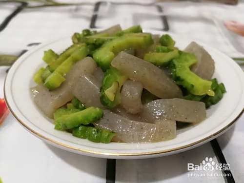 今天做一道好吃又减肥的家常菜,魔芋豆腐炒苦瓜。