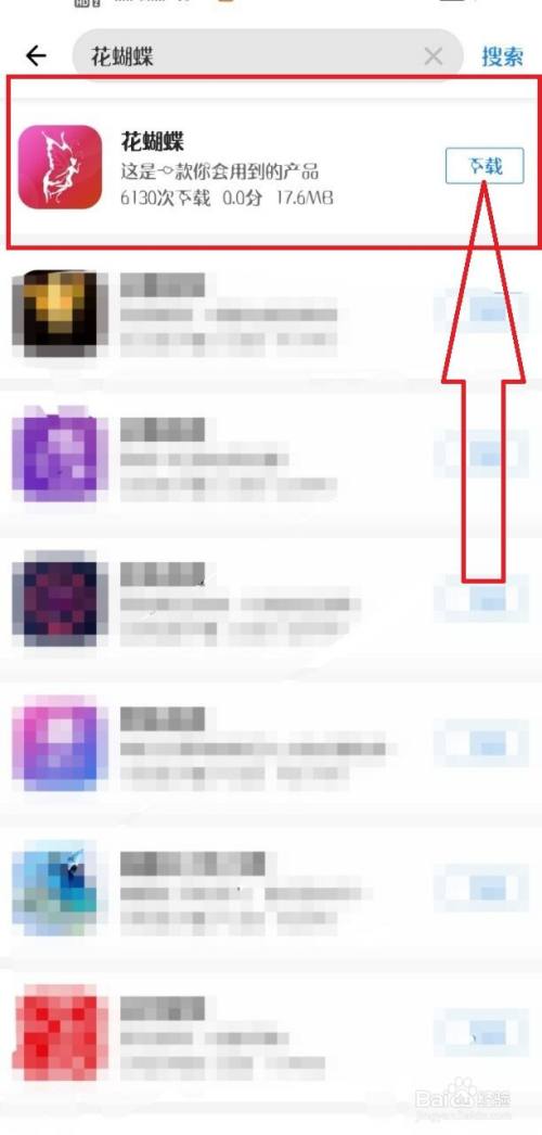 第二步,再上方的搜索框里输入“花蝴蝶”并搜索。