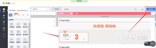 回到页面装修首页后,产看优惠券投放后于整体页面的组合效果,为了更好的查看可以点击页面右上角【预览】按钮,进入页面预览,确认无误后,点击页面右上角【发布站点】按钮,优惠券投放即可完成。进入店铺查看效果就可以了。