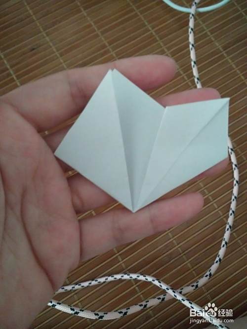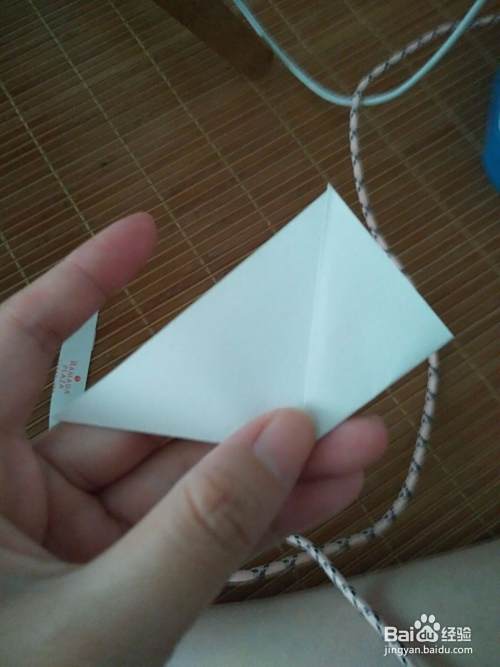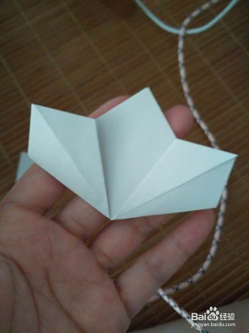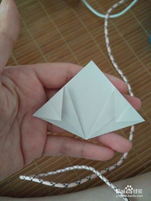翻折上去的2个角,上面的小三角形,向下朝外翻折。如图所示。