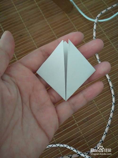 沿着中间线,分别将2个三角形朝内翻折。如图所示。