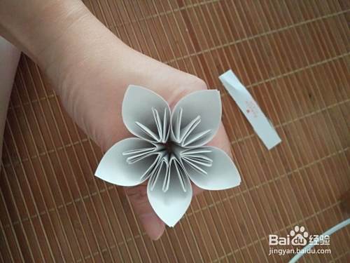 5朵花瓣的边缘依次粘合起来,这样一朵樱花就完成了。如图所示。