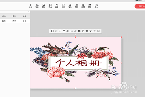 图片出现在画册上,调整图片的尺寸,也可在图片加修饰。