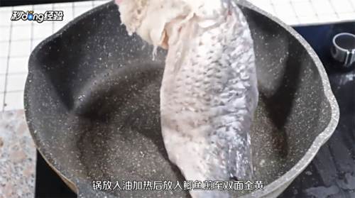 2锅放入油加热,再放入鲫鱼煎至双面金黄。