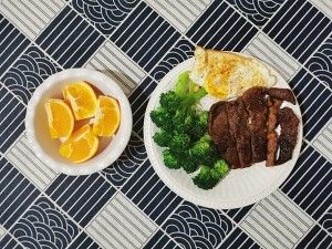 橙子➕煎牛排➕水煮西蓝花➕煎蛋