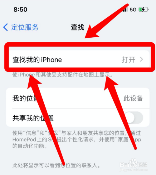 将“查找我的iPhone”设置为打开,即可开启定位。