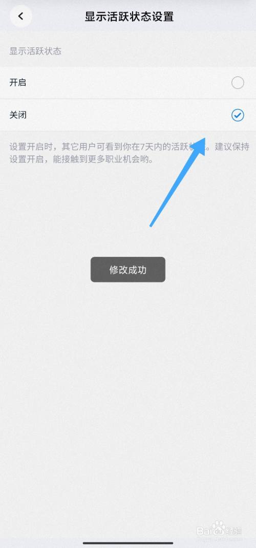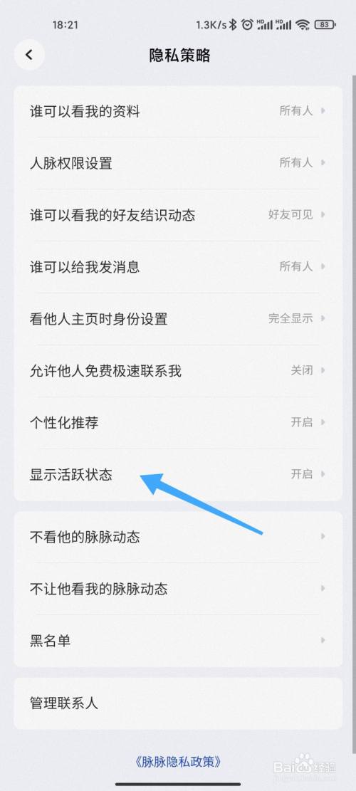 脉脉在开启活跃状态时,其它用户可以看到在7天内的活跃情况,在设置中可以选择关闭状态。