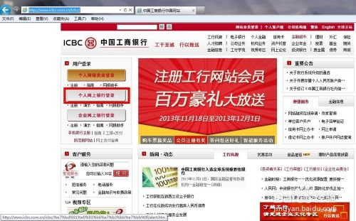 登陆中国工商银行官方网站http://www.icbc.com.cn/icbc/,点击个人网上银行登陆!如下图所示