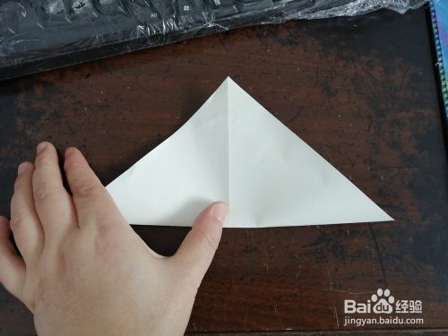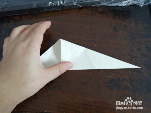 折好后,把两侧的边一起向下折,顺势把角向右折。
