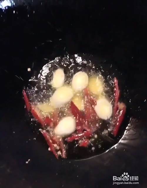 锅烧油,放入葱姜,大料,干辣椒爆香