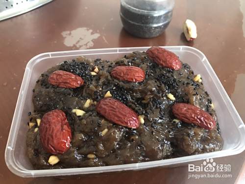 撒上熟芝麻和红枣,冷却后冷藏一周。想吃的时候,取出切片,切成约1厘米厚,摊在盘子上,加热后食用。如果热的话,红薯蛋糕是最好吃的??