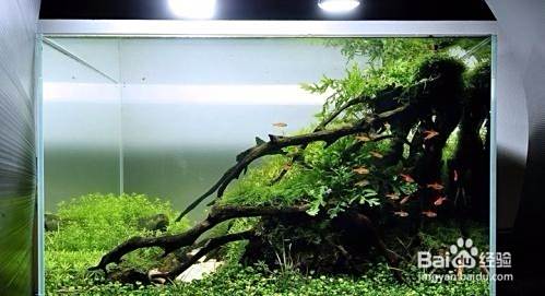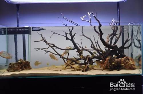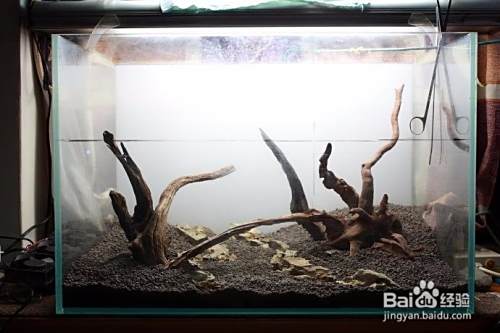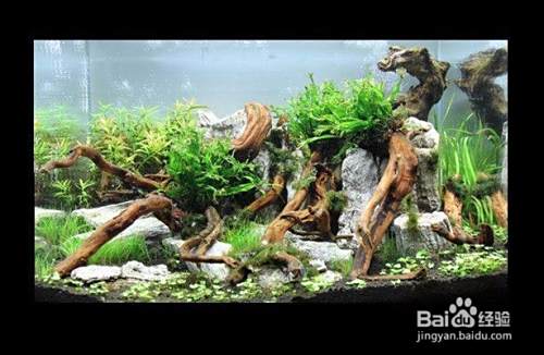 造景材料要大小协调放很有讲究,既要协调一致,又要便于堆放牢靠。一般选用大的沉木或石头做主景,小的沉木或石头做衬景或起到加固的作用,但要注意所用的材料大小、比例、造型与景观协调一致。同时在堆放时,要确保牢固,以免加水或管理操作过程中倒塌,造成水族箱破裂。