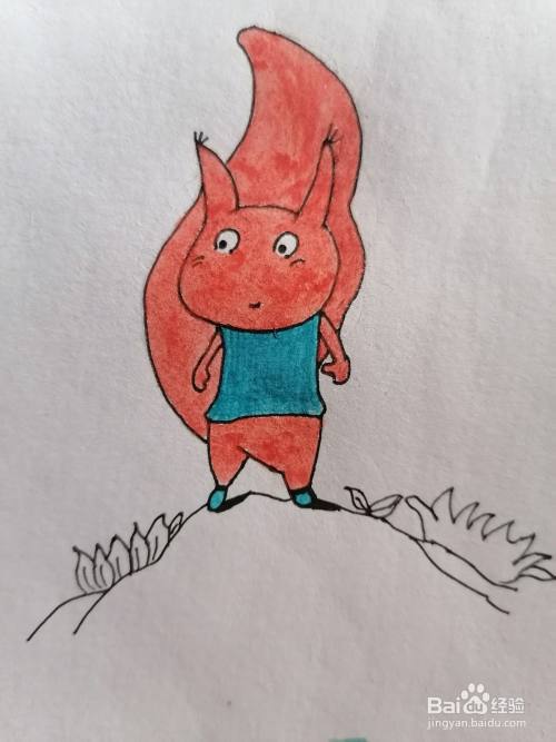 用朱红+白+赭石色水彩涂好小松鼠的身体