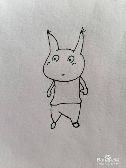 首先在纸上画出小松鼠的头,画上小眼睛和尖耳朵