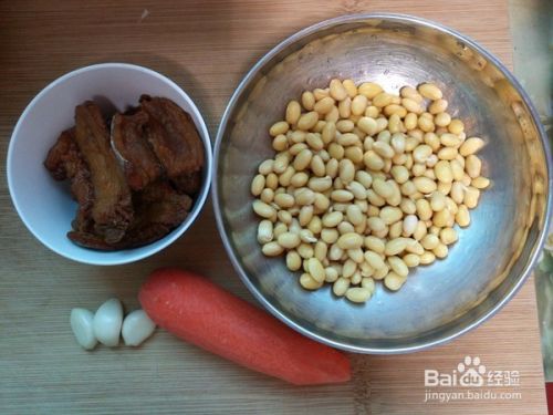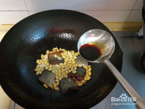 将鲅鱼干提前用花雕酒泡软,黄豆提前两天用水泡发,盖湿布生出豆嘴,然后用水焯一下将豆皮去除