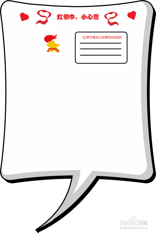 接下来在顶部中央位置书写上我们的主题红领巾,小心意。可以添加一些小的图案修饰,会比较美观。