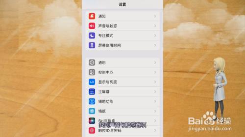 在苹果手机的设置界面中,找到声音与触感选项,点击它。