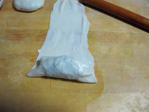 接着斜卷,再向另一个方向斜卷,然后再直卷,卷完后立起来按成圆形