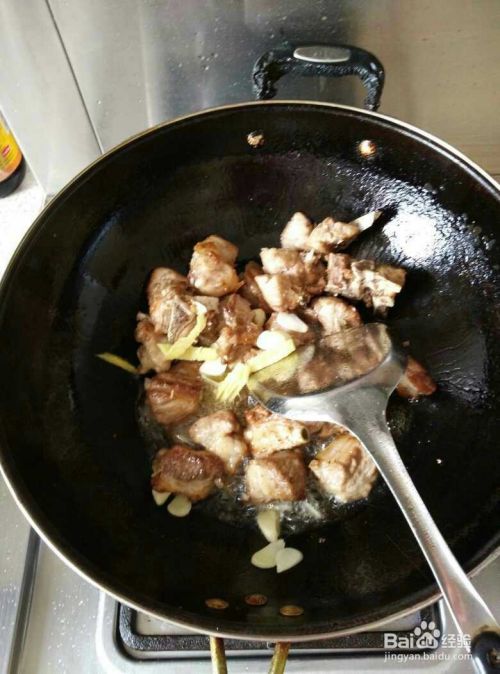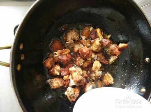 把排骨放进热油进行翻炒,要多翻动不然会烧糊