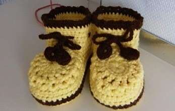 6.鞋底另外起头,起8针两边放到10针或12针,结到收口时也要两边收几针圆口,完成后再和鞋面缝好,宝宝鞋完成了。