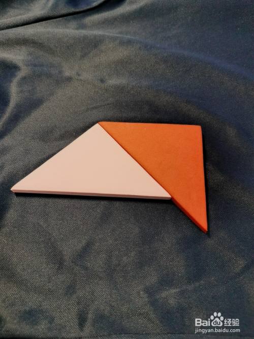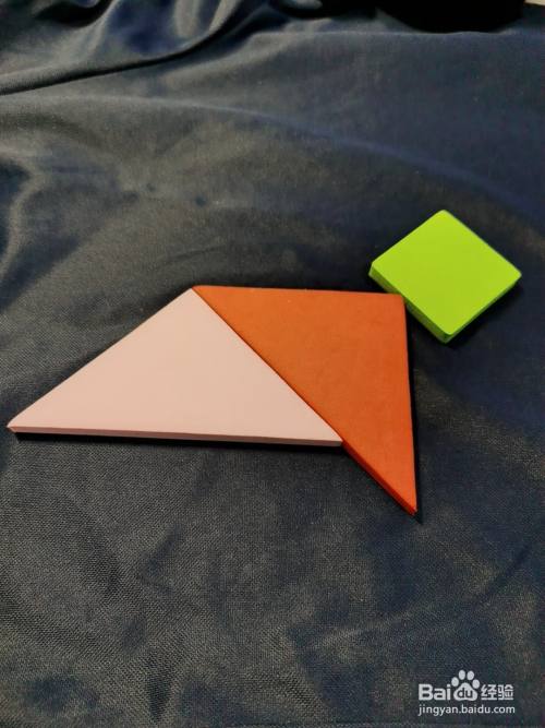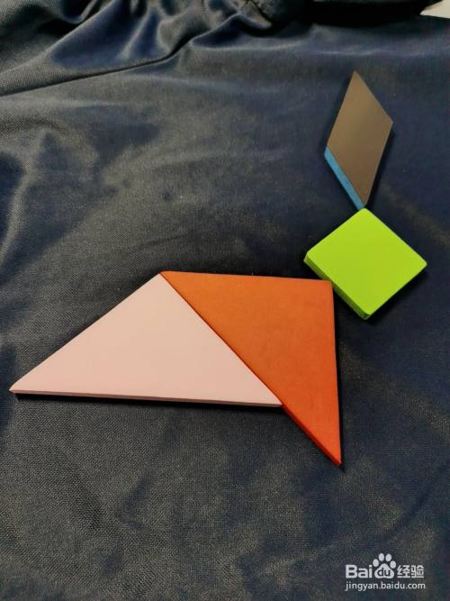 拿出一个橘色小号三角形板放在黄色小号板的上面,如图所示。