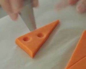 一根筷子,一个圆形饼干花嘴,用筷子粗的那头在三角形上随意压出3个孔,再用曲奇花嘴在边缘切一个半圆。这样就可以了。