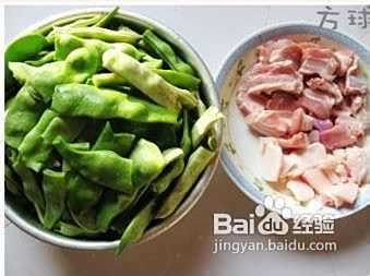 把豆角两头的尖掐掉,清洗干净,掰成小段。五花肉切厚片,还要切一些肥肉,豆角是喜油的菜,遇油则软。