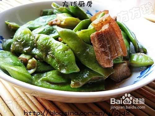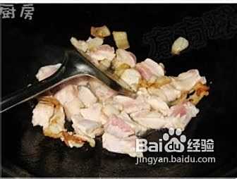 先把肥肉下热锅里炸出油,然后下五花肉煸炒,待肉变色后下豆角。
