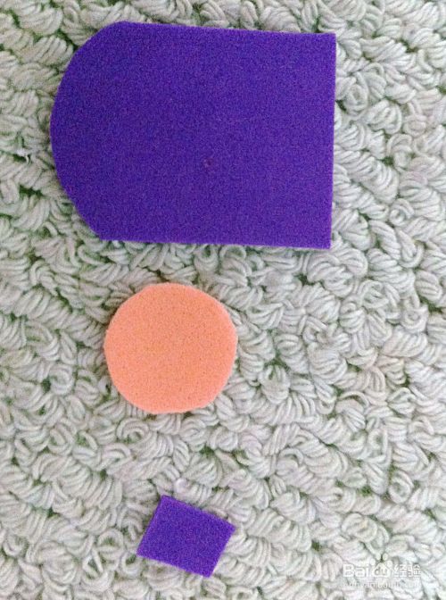 取紫色和橙色海绵纸做胶囊小人的裤兜。