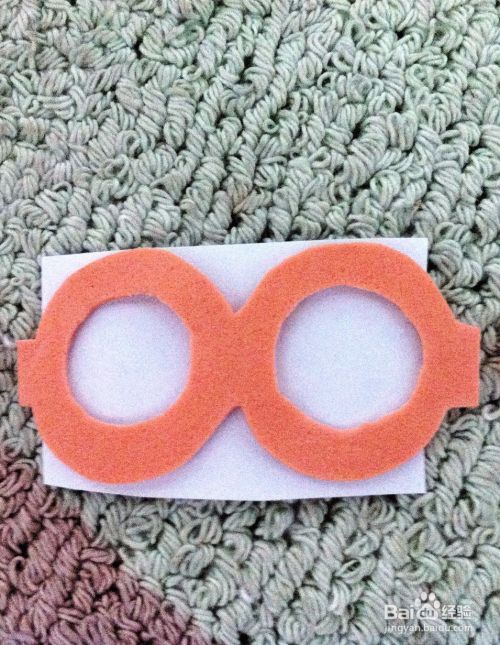 将镜框剪下,与镜架的一段相连。为了突出效果,可用白色卡纸附在镜框后面。