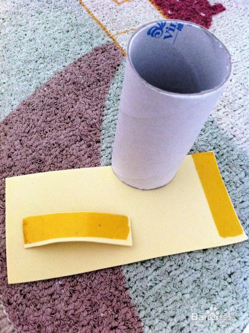 将卷纸芯的周长作为黄色海绵纸的长,裁剪后将海绵之用双面胶粘在卷纸芯的一端。