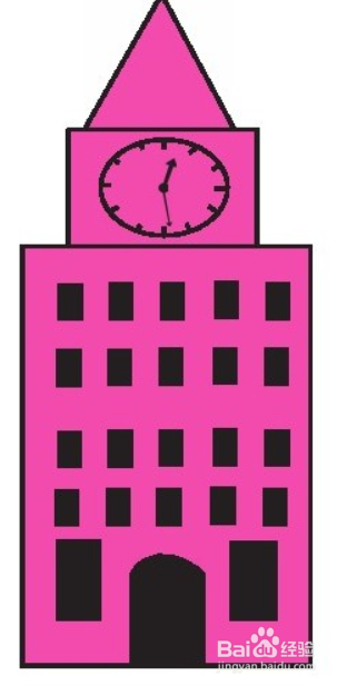 画上大钟和门窗,钟楼就完成啦