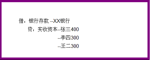 企业刚刚成立的时候每一个股东的出资额就是公司的股本,这个怎么做凭证呢?假如张三投资400万;李四投资300万,王二投资300万,全部都是用银行存款支付: