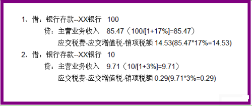 2.假如XX公司是小规模,10月份收入10万,已存银行,税率为3%: