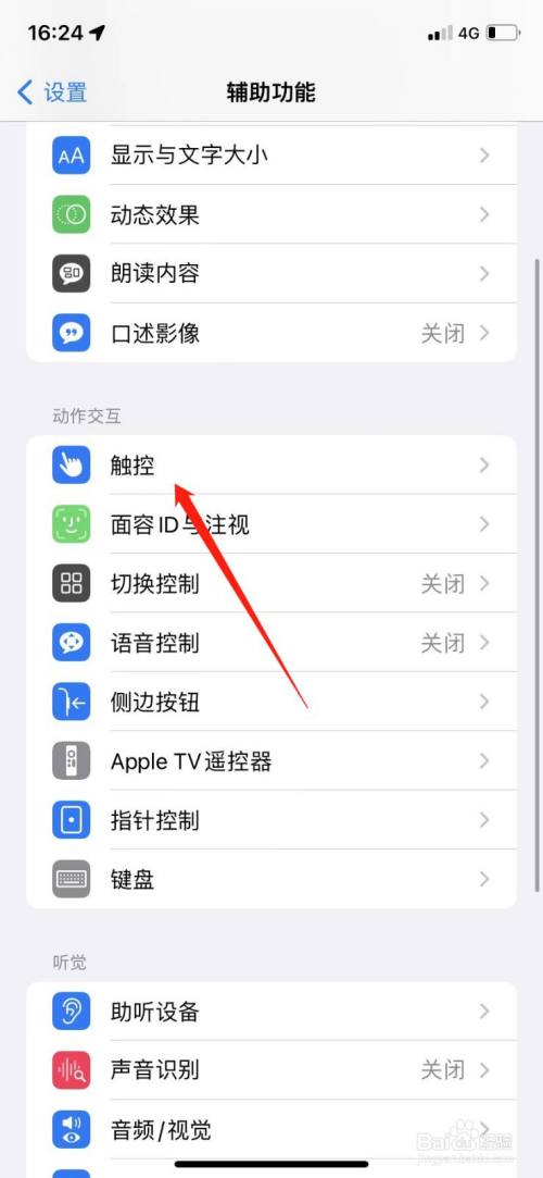 在辅助功能中找到触控,点击进入设置;
