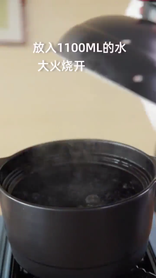 放入泡好的大米,大火催开后,转小火煮30分钟。