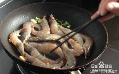 调料入锅:待双面虾皮煎至金黄,把虾推到锅内一侧,用锅内余油煸香葱姜蒜末