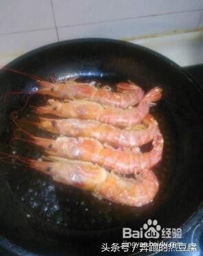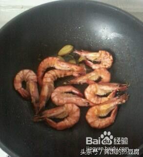 炒虾:锅内下入熟猪油,烧热,下入对虾,小火慢煎