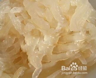 捞出,放入盘中。海蜇拼盘,放入垃圾啊蒜瓣酱,搅拌均匀,