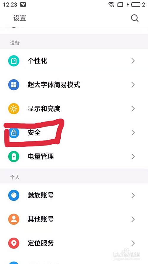 点击“设置”打开,打开后往下拉找到“安全”单击进去