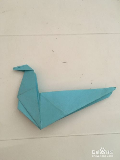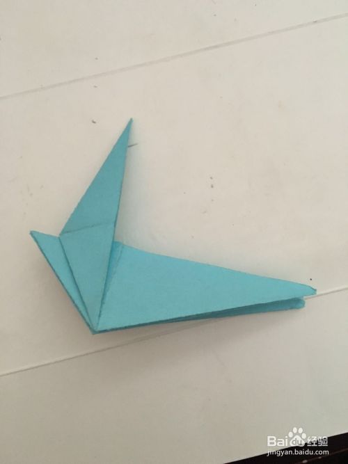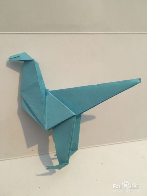 第六步 对折完之后 恐龙的背后有三部分 取外边两部分向下折叠出恐龙的腿和足 再把胸前的三角折进去就行了