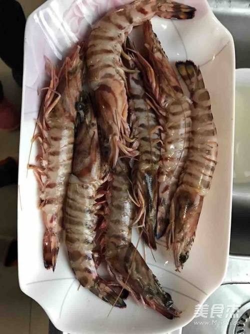 1洗干净虎虾,背部用剪刀剪开,把肠子抽掉