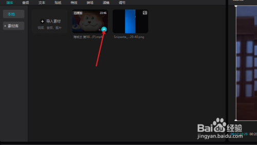 点击编辑区域上的素材加号,如图。