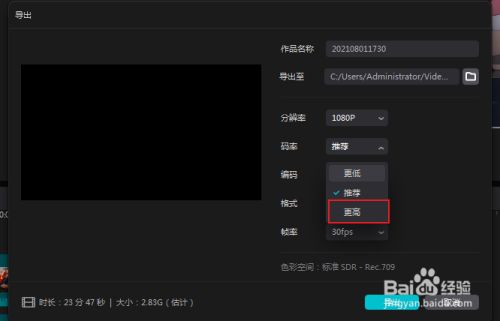 设置了码率后,点导出。
