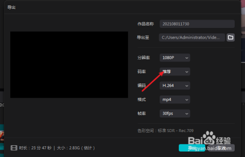 那么导出选项这里有个码率,点击推荐。