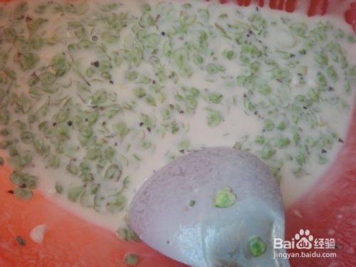 盆里加水面粉,鸡蛋,食盐,鸡精,调成糊状