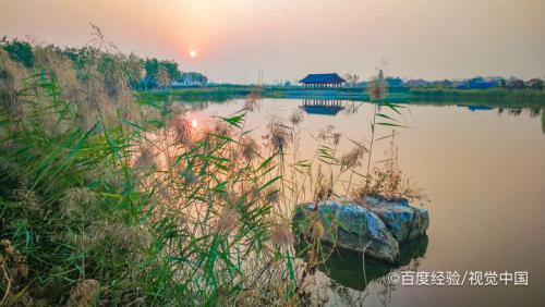 木栈桥,走在吱吱响的栈桥上,看夕阳从湖面慢慢落下,夕阳的余晖照在栈桥上,将桥上的人影拉得很长很长。走到湖边,可以看到湖对岸的碧海浮螺亭和芳菲园。