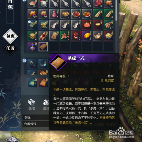 这个任务打架比较多,后面异邦人伤害比较高。建议组队完成。成功击杀最后的异邦人后就完成任务了,任务奖励就是杀虎一式的技能书。右键就可以学习了。